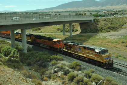 Union Pacific 7715 East dropping into Mojave. We took California Highway 14 south to Avenue S in Palmdale, to Sierra Highway south to Pearblossom Highway east to California Highway 138 to Cajon Pass, where we took one last break at McDonald's. From there, it was Interstate 15 to California Highway 60, to California Highway 57 to the Main Street exit in Santa Ana then local streets to home. It had been a fantastic trip with my mother on this Summer Vacation 2014 trip.