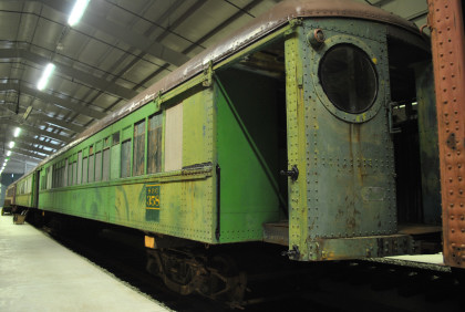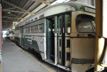 Southern Pacific Harrima-style steel commuter coach 2113 built by the Pullman Car Company in 1924.