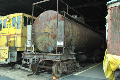 Western Pacific tank car 1025 built by American Car and Foundry in 1912. On May 4, 1950, it was converted into a maintenance-of-way water car, number WPMW 1582. The final service for this car on the Western Pacific was as the bilge water car for the ferry Las Plumas in Oakland. The Bay Area Electric Railroad Association traded its' tank car, GATX 79840, to the Western Pacific for car 1582.