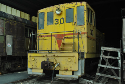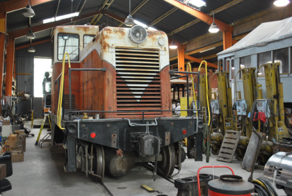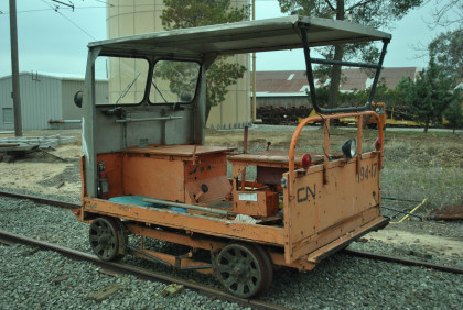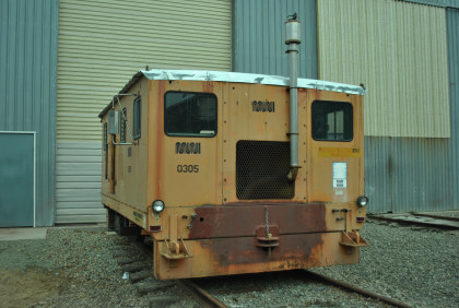 Muni maintenance-of-way motor unit 0305A built by Marmon and used for the construction of the Muni Metro subway. When in use, it had a platform on the roof for working on the overhead wires in the subway. It is used by the museum as a shop switcher.