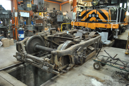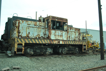 Sacrmento Northern 44 ton switcher 146 built by General Electric in 1946 in for some heavy work. It was one of seven 44 ton locomotives purchased by the Sacramento Northern after the California Public Utilities Commission adopted regulations making the continued operation of the third rail north of Sacramento no longer feasible. The reason to purchase 44 ton locomotives was the 90,000-pound rule in the 1937 labor contract with enginemen. This clause permitted railroads to operate locomotives below this weight without a fireman.