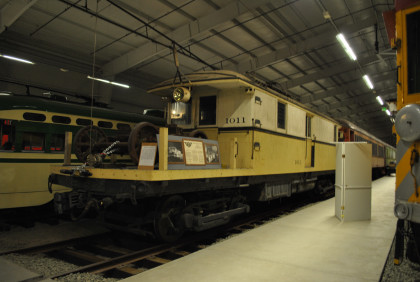 It was used as a wrecker on the Key System until electric rail operation ended in 1958. It was equipped with tools, blocking, tackle and other supplies needed at the site of a derailment or other accident. The long open platform at one end of the car is where a spare truck can be carried so a damaged truck could be replaced. The 1011 is currently painted in the yellow, cream and black paint color scheme of the East Bay Transit Company, which was a division of the Key System from 1936 to 1942. This car was acquired by the Museum in 1958.