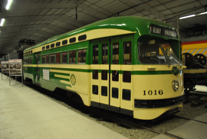 San Francisco Municipal Railway PCC Streetcar 1016 made its inaugural run at the Museum on Saturday July 10, 2010. It is the first car in the last streetcar order San Francisco's Municipal Railway placed with the St. Louis Car Company in 1951. It was purchased by the Bay Area Electric Railroad Association in October 1982 when it came out of service, and has been preserved at the Western Railway Museum ever since.