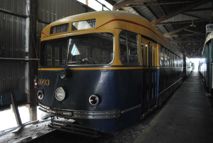 San Francisco Municipal Railway PCC Car 1003 is the lone survivor of an order of five cars built by the St. Louis Car Company for the Muni in 1939. The cars were like the Muni's standard "Iron Monsters" in that they were operable from either end and configured for a two-man crew. However, they were quite different in appearance. They were "streamlined" and quite similar in appearance and operation to a PCC car. Since the San Francisco City Charter prohibited the payment of patent royalties (in this case to the President's Conference Committee, later the Transit Research Corporation), hand controllers were used instead of foot pedals, making them slightly different then the PCC.