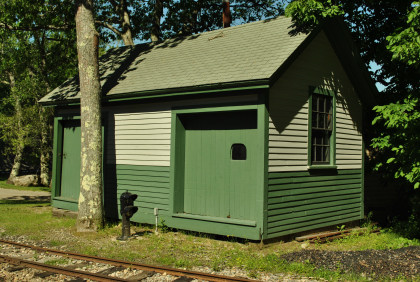 The octagonal crossing shanty with the Wiscasset car house.