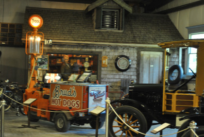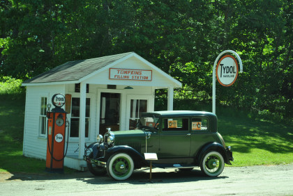 The Tompkin's Filling Station from East Boothbay, Maine. Now for the the Antique Auto Exhibit.