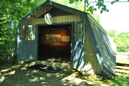 The crossing gate from the old US Highway 1 Bridge in Belfast, Maine on the Belfast & Moosehead Railroad. This ended our tour of Boothbay Railway Village. A special thank you to them for having us here today. Robin and I left the grounds and headed east on US Highway 1.