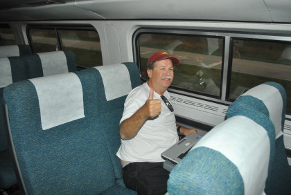 I first completed the entire Amtrak system at Tampa, Florida on the Silver Star Tampa Section when it arrived at the station at 12:17 P.M. Eastern Daylight Time on August 17, 1996. My second time was on the Ethan Allen Express 291 on June 16, 1997 upon arrival in Rutland, Vermont. On October 14, 1997, I completed riding the entire Amtrak System sober when I arrived on the Silver Palm in Miami, Florida. I completed it yet again on Amtrak 822, The Heartland Flyer, on August 30, 1999 when I arrived in Oklahoma City then once again, on The Lake Country Limited 343 on June 20, 2000 when it arrived in Janesville, Wisconsin. My sixth time was aboard Kentucky Cardinal 850 on September 2, 2000 at Jeffersonville, Indiana. My seventh was on Downeaster 681 on December 31, 2000, when it arrived in Portland, Maine, I achieved this yet again on the Kentucky Cardinal 850 on December 27, 2002 at 8:40 EST in Louisville.