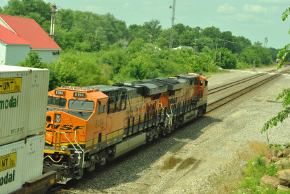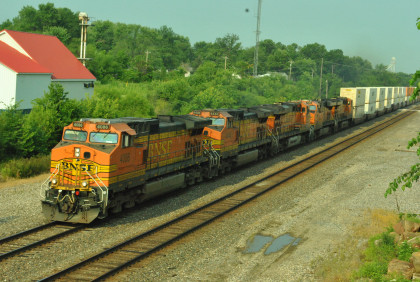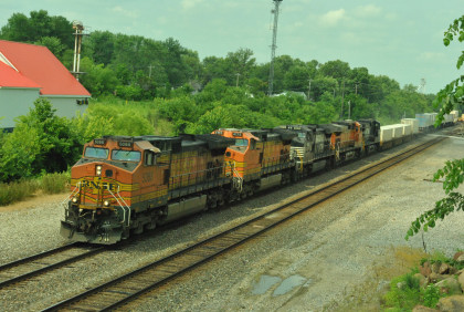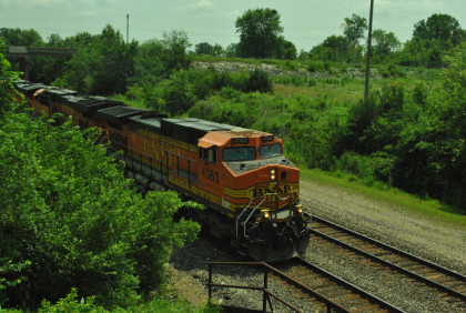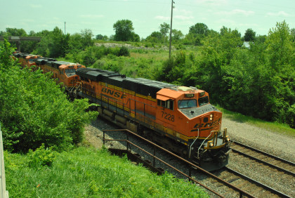 BNSF 7201 West was next. Westbound photography from the lookout point was getting harder and harder due to the vegetational growth. What was once a clear view is almost a hidden view now!