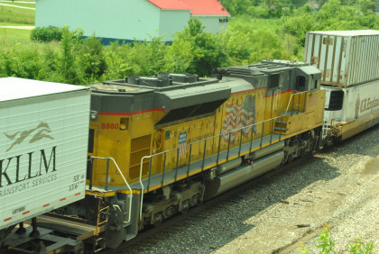 An Illinois view on my way to La Plata. I finished so started writing the Shoreline Trolley Museum story and I pulled out my list of trolleys only to realize it was by date so I would have to scan the list each time I needed to find a trolley. Shirley decided to help me since four eyes are always better than two. We did all the trolleys in the story and had a fantastic time doing it with us laughing and joking our way through it. I showed her how I did things on the computer and she was amazed. I finished just after Fort Madison then relaxed until the old bridge west of Gibbs. I thanked Shirley and wished her a safe trip to Lawerence then went downstairs to detrain in La Plata and stepped off to find Bob Cox was working the station this night.