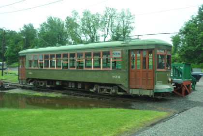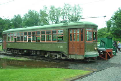 New Orleans Public Service streetcar 836 built by Perley Thomas in 1922. It operated on the Prytania, Magazine, Freret, Claiborne, Jackson, Cemetaries Canel, Tulane, St. Charles, St. Claude, West End, Gentilly and Desire Lines. Her last duty for Public Service was November 1963 to May 29, 1964 on the Canal Line. Donated by New Orleans Public Service, Inc. through the efforts of our then treasurer Donald Snelgrove, Car 836 arrived on July 22, 1964 at Windsor Locks railroad yard, and was then trucked to the museum.