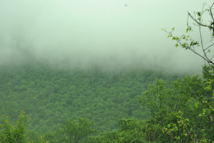 The clouds parted just a moment to reveal a mountain on this normally cloudy raining day.
