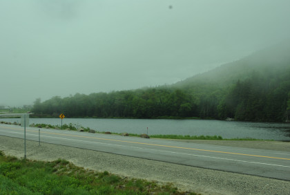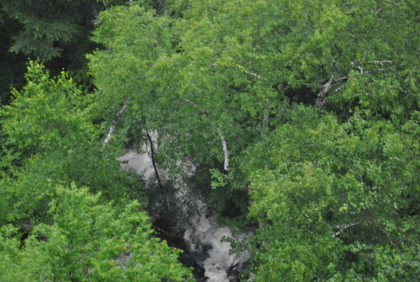 Two view of US Highway 302 far below us with a waterfall seen in the first of the pictures.
