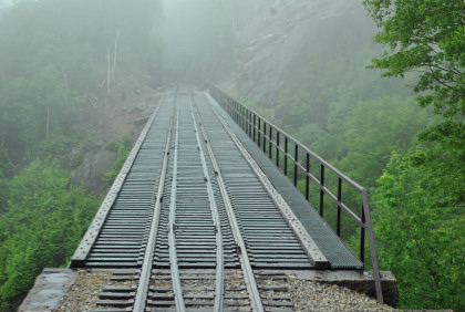 Two views looking back. Next we will head out onto the straight Crawford Notch Trestle.