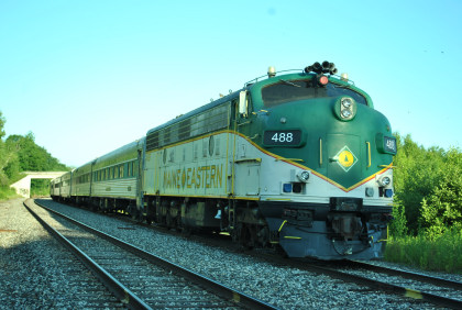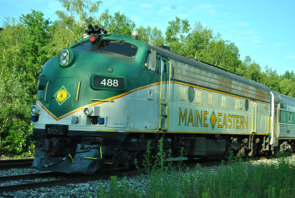 The Maine Eastern passenger train set was in Brunswick this morning.