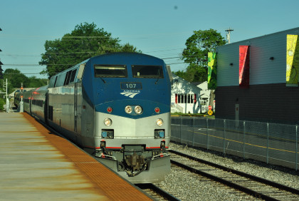 The Amtrak station area in Brunswick and the map of the Downeaster.