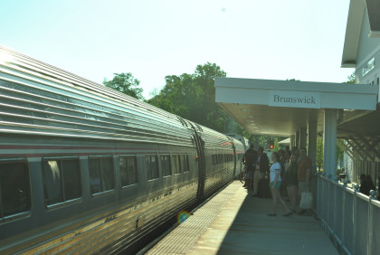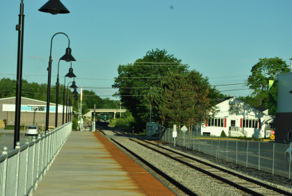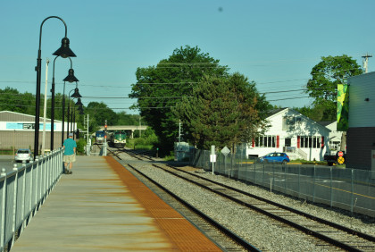 The Brunswick station platform on a beautiful Maine morning.