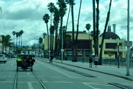 We ran on the private railroad tracks along the Boardwalk which is where the Big Trees and Pacific passenger trains stop in Santa Cruz.