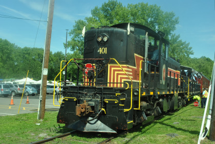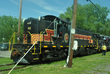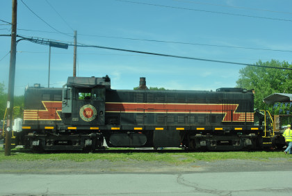 Catskill Mountain Railroad RS-1 401, ex. Green Mountain 401 1976, exx. Illinois Central Gulf 1262 1972, exxx. Gulf Mobile and Ohio 1052, exxxx. Illinois Terminal 1056, nee Illinois Terminal 756 built by American Locomotive Company in 1950.
