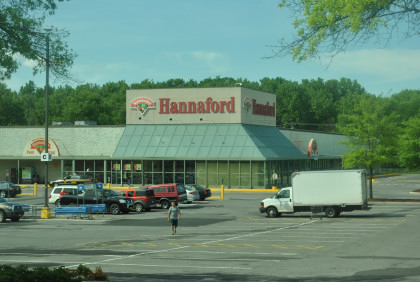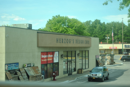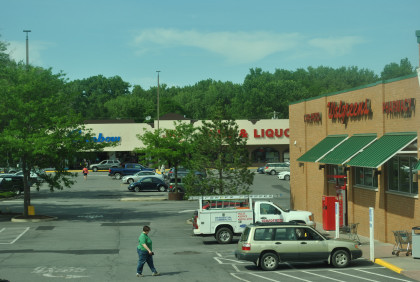 The train ran by all the stores in Kingston Plaza.