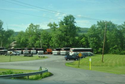 A bus company yard.