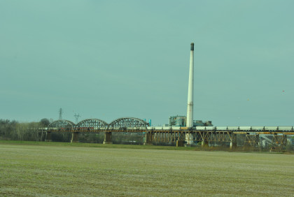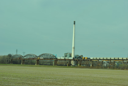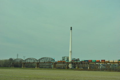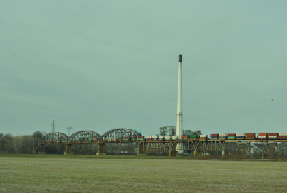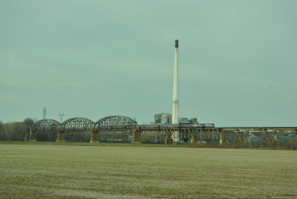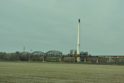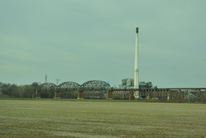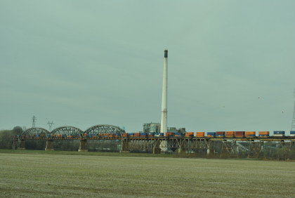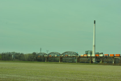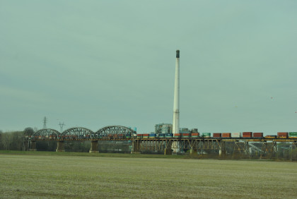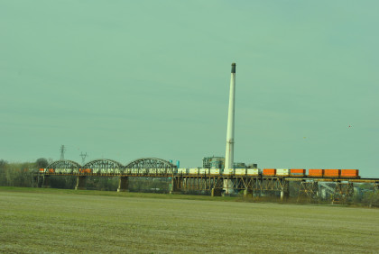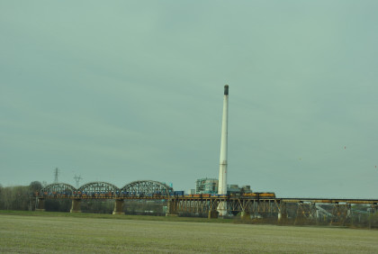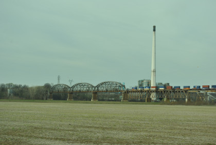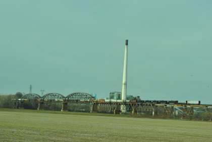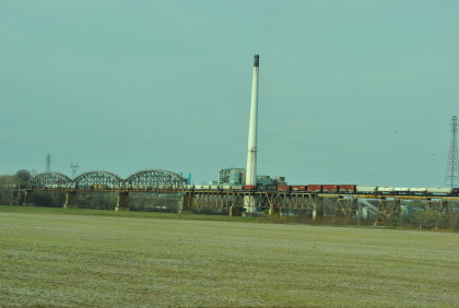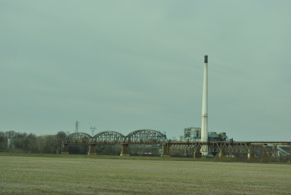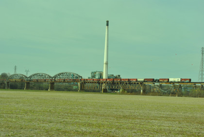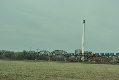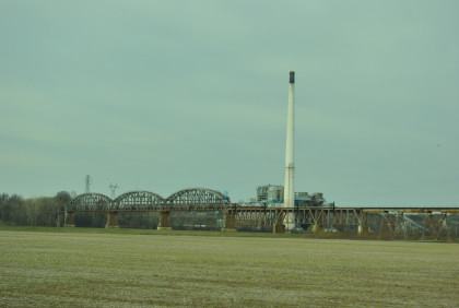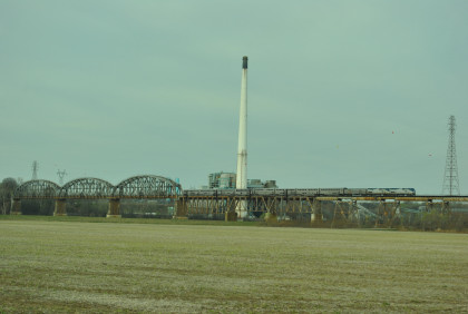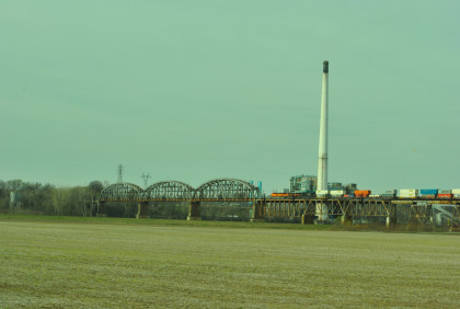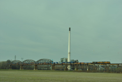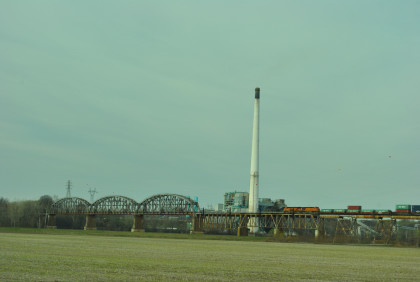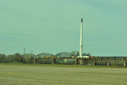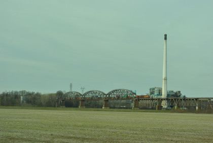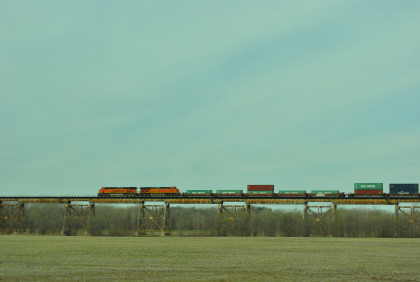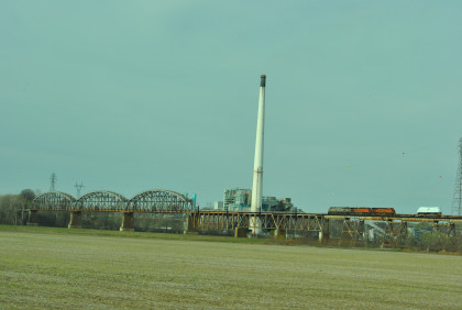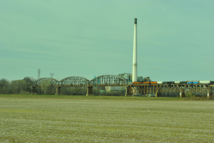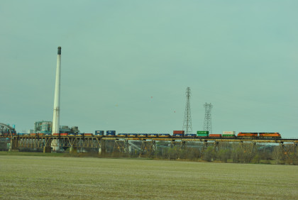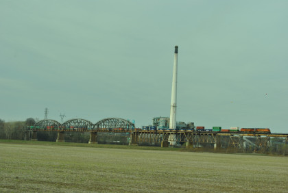 BNSF 6814 West at the Santa Fe Railroad Missouri River bridge just east of Sibley which was our last train here.