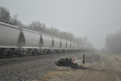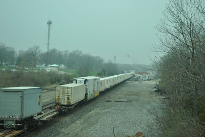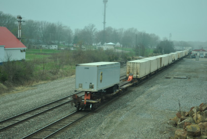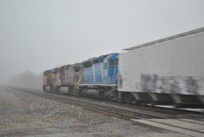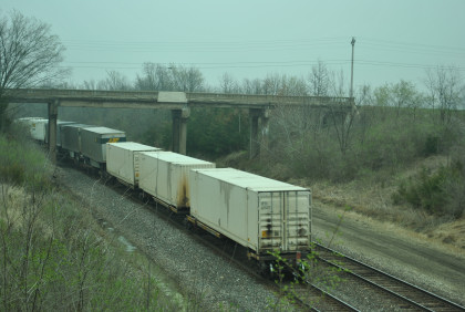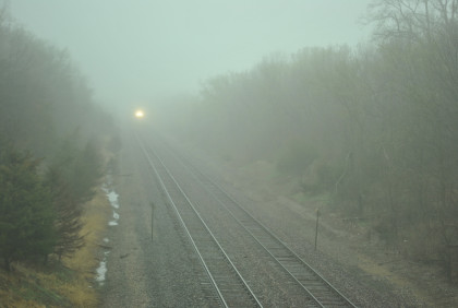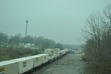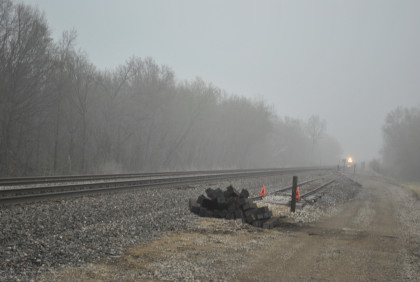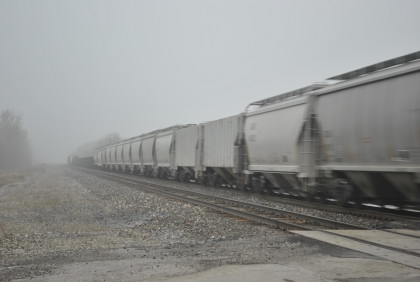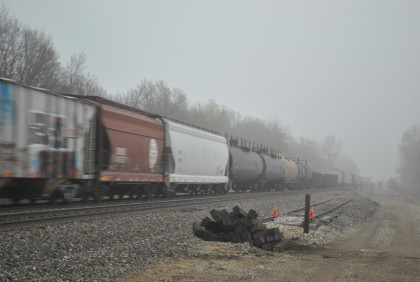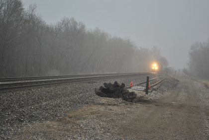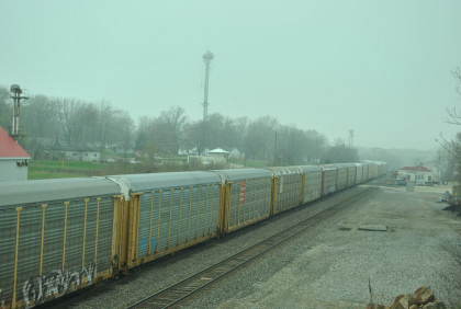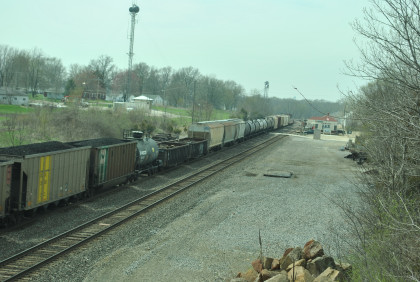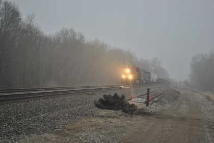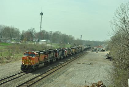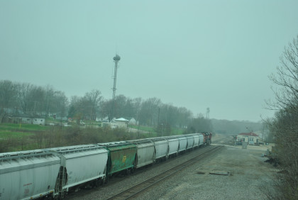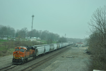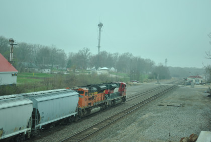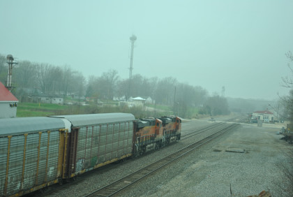 We are dedicating the La Plata Spring Railfan Event 2015 to the memory of Winston Walker. We wish you were here with us and you are truly missed. This morning we were under a severe thunderstorm alert. After breakfast in the lobby, Jon and I went to the rental car and drove around to the side door looking for Jim who was missing. We soon found him and drove out to Missouri Highway 156 west to Missouri Highway 3, to US Highway 36 to Missouri Highway 5 to Route J in Marceline to Route E and the BNSF grade crossing there. I needed a westbound train picture and soon we heard a horn from the east and knew my wish had been granted.