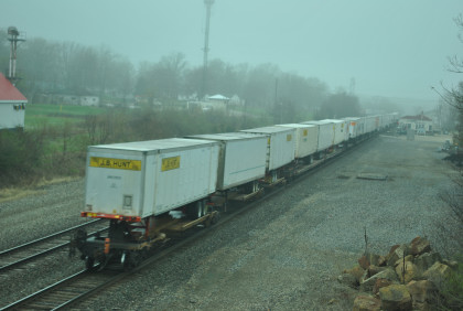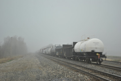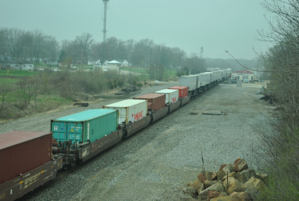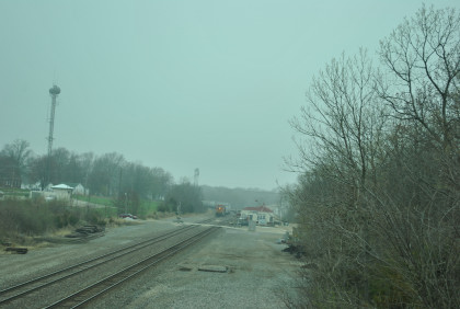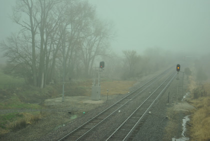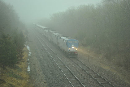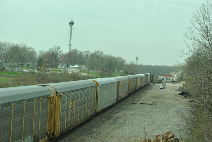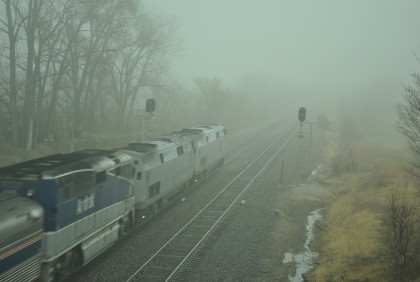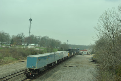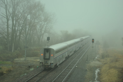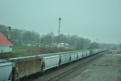 Our last train, BNSF 7265 East, with Jim and John doing what they do best. This train ended the photography of the La Plata Spring Railfan Event 2015. We all returned to the Depot Inn & Suites to clean up before heading to Colton's Steakhouse in Kirksville but I returned the rental car on the way. At an early dinner, I enjoyed a 12 ounce sirloin steak then we returned to the hotel where I went through the Exhibition of Amtrak History. I then returned to the Pullman Suite to do my clothes washing and write this story. At 7:00 PM, I showed Jon and Jim my four Winterail programs. After that, a sauna tub bath and my last night in the Pullman Suite.