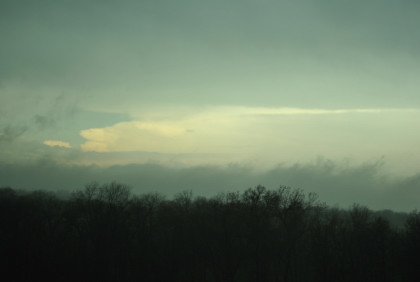 BNSF 7913 West at the Route E grade crossing. From here we drove back to the Route J grade crossing and parked. Soon we heard thunder and started seeing flashes of lightning, so we decided to move to west Maceline taking Road 208 to Marceline Lake Road to Road 206 to Long Branch Avenue grade crossing. More lightning, thunder and rain; plus it was getting dark as night, so we decided to return to the Chris Guenzler Million Mile Lookout Point in La Plata where Jim wanted to interview us for his next Railfans Chasing Trains project. We drove through Marceline in the pouring rain and then drove out to US 36 still in the driving rain. I then turned to take the road to Bucklin and the dirt roads back to the paved roads by Ethel to get back to La Plata. That turned out to be my smartest decision of the whole trip because we soon came out of the thunderstorm and I stopped for some pictures of the clouds.
