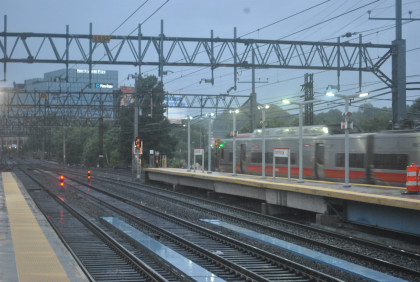 Right on time at 7:52 PM, a New Haven Line train arrived and picked us up for Devon. Near there, we had to walk four cars forward to detrain. In a downpour of rain, we dashed to the waiting Waterbury train and boarded that for the trip back to Waterbury and once there, we left the Metro North Railroad. A special thank you to the Metro North Railroad for all the great trips the company has given me over the years of train riding.