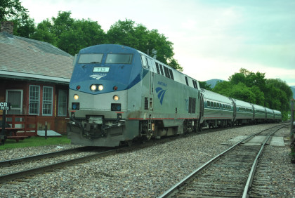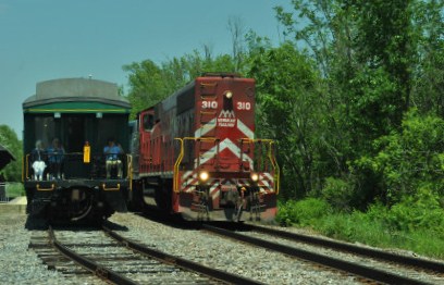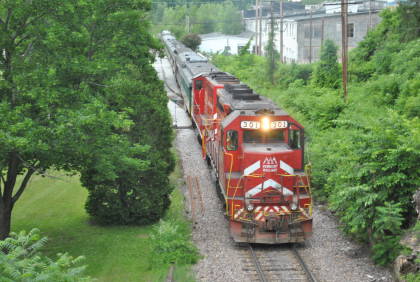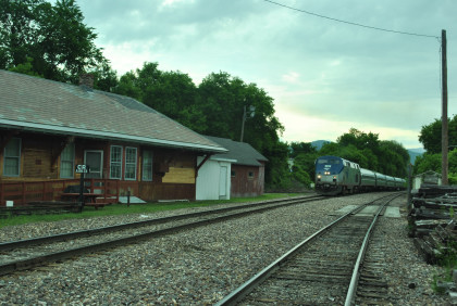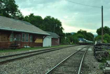 Our passenger train came up the siding as the Rutland Switcher came down the mainline then passed the Amtrak station and came back to it on the mainline.