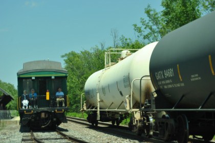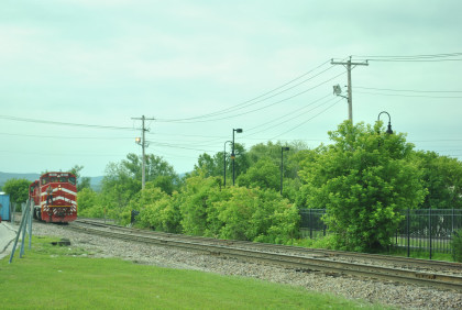 Down at the end of the road. The train stopped at Charlotte at the old commuter station for a photo runby of a Vermont Railroad freight.