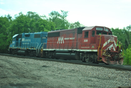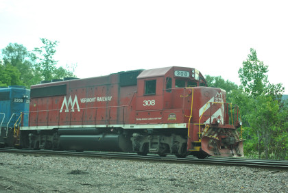 Vermont Railroad GP40-2 303 and GATX GP38-2 2208, ex. EMD Leasing 756, nee Penn Central 7956 built by Electro-Motive Division in 1972.