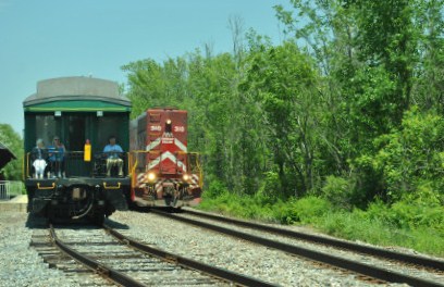 Our power reversed down the siding to get our train set.