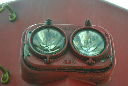 The eyes on the cab car door has me in its reflection. The train arrived into Rutland, ending the NRHS Omya Trip.