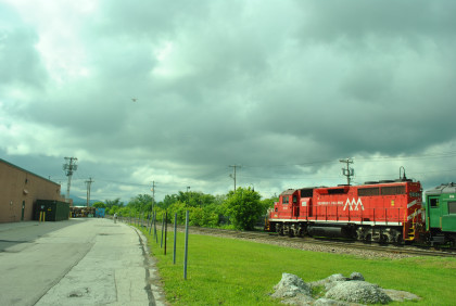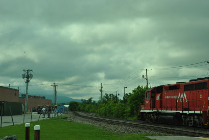 The special paint scheme on Vermont Railroad 311. With the buses abnormally running late from the Holiday Inn, I walked south and saw drones in the air for the first time in my life.
