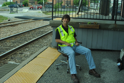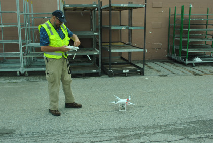 There is a drone in the sky. Steve Barry of Railfan Magazine was getting ready to launch his own drone.