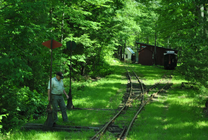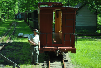 At the end of the track, we reversed and went forward to pick up the caboose which Robin and I would be riding on this unique railroad.
