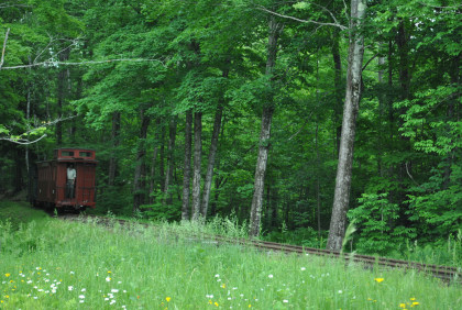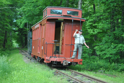 Sandy River & Rangeley Lakes Railroad caboose 559 that we rode in on our trip.