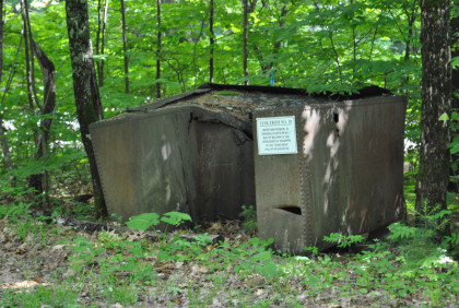 The water tank from 0-4-4T 20 built by Baldwin in 1903 as Eustis Railroad 7 which was wrecked in 1922. It was found near the Phillips roundhouse in 1936.
