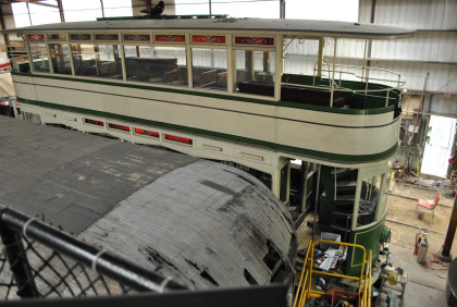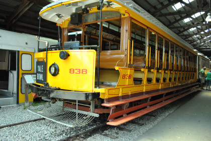 The open cars also continued operating on excursions to the local beaches and on charter service including fan trips. The Yale service (along with the available extra space to store the cars at the James Street Car Barn upper level) was, however, the reason these cars were not scrapped in the 1930s or earlier when many other systems scrapped their open cars. The last Yale Bowl open cars ran in the 1947 football season, and all New Haven streetcar service ended in 1948. A number of these open cars were donated to museums. 838 long held the all-time record for car mileage at Seashore, though it took a back seat to 303 when it was taken out of service in 2005 for needed sill work. It returned to service for a few years and then was removed again in 2009 for a major body and mechanical upgrade including rehabilitation of one of its two motors. The body exterior of the open car was repainted and the interior flip-over seats were refinished, and the ceiling had new birch paneling installed.
