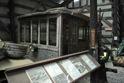 One source of freight was cordwood harvested along the present Seashore right-of-way and hauled by 100 or 102 from the present Trolley Museum site to the Kennebunk interchange. In early years, the railroad also received coal from barges and schooners at Cape Porpoise, Maine. Both 100 and 102 continued in service for York Utilities at Sanford until trolley freight service ended in 1949. After this, two small GE diesel locomotives hauled the freight. Seashore acquired 100 (along with railway post office car 108) when York Utilities ceased operation in 1949. 100 received little attention at the museum until Seashore began planning a restoration in 1999. In 2006, Seashore received Federal Transportation Enhancement funds which paid for a significant part of 100's restoration. To comply with the restoration grants, the museum searched for and used original materials such as southern yellow pine. 100 arrived at Seashore painted green but careful scraping revealed that the locomotive was brown during most of its life. Seashore also developed a related educational curriculum for elementary students and the museum mounted a companion exhibit in its exhibit hall. Seashore completed the full restoration in 2009. In 1980, the National Park Service placed this locomotive on the National Register of Historic Place along with nine of the museum's other Maine cars.