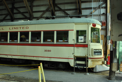 Service on the LVT ended in 1951, and the 1000s were sold to a junk dealer who resold the body of 1030 to Seashore. No. 1030's trucks and motors were not included since they were wanted by the Philadelphia and Western for their cars. The junkman substituted the equipment from a former C&LE car, which turned out to be the one from the famous airplane race of 1930. 1030 was Seashore's first car from outside of New England, beginning the museum's national and international scope. Over the next 24 years, a group of Allentown area members would gather at Seashore every summer to work on the car and a fundraising effort was begun to complete the restoration of the car for the nation's bicentennial in 1976. Seashore restored the car to its LVT parlor car appearance. Car 1030 returned to service and was dedicated in memory of Howard P. Sell on members’ day in 1976.