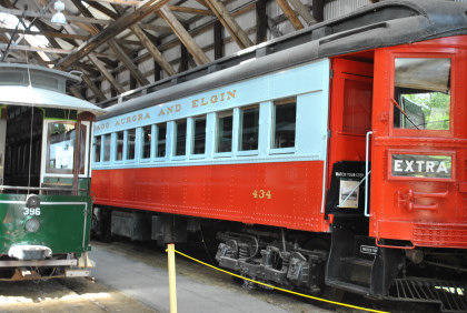 Chicago, Aurora & Elgin Railroad 434 built by the Cincinnati Car Company in 1927. The main line of the Chicago Aurora & Elgin ran from Forest Park near the western boundary of Chicago, to Wheaton. From Wheaton, branches extended west to Aurora, Geneva, Batavia and Elgin. From Forest Park to downtown Chicago, CA&E trains operated over the Garfield Park line of the Chicago Rapid Transit (later, Chicago Transit Authority).