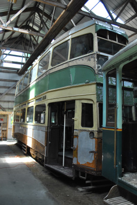 Liverpool Corporation double-deck tram 293 built by Liverpool Corporation in 1939. Liverpool Corporation Passenger Transport, a department of the city government, took over the city's horsecar lines in 1897 and soon electrified them. In 1939, just before the start of World War II, Liverpool built its last group of trams - a fleet of double-truck and single-truck streamlined, double deck cars. Liverpool 293 is one of these four-wheel, single-truck trams and was known in Liverpool as a "Baby Grand" to differentiate this type from the larger double-truck versions known as "Streamliners".