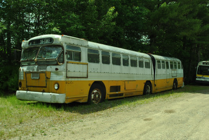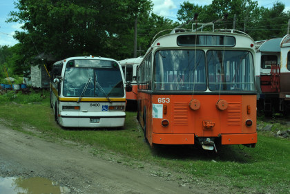 MBTA Rapid Transit Series bus 6400 built by General Motors in 1985, and Lausanne Public Transit Authority trolley coach with trailer 653 built by Franz Brozincevic & Cie in 1964.