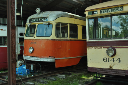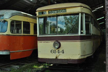 Baltimore Transit Company Peter Witt car 6144 built by the J.G. Brill Company in 1930. The last 50 Peter Witt cars, 6101 to 6150, came from Brill in 1930 and featured mechanical advancements including a Westinghouse Variable Automatic control system and some cars (including 6144) were equipped with a W-N double reduction gear system. These cars were precursors of the streamlined PCC streetcar design a few years later. The mechanical improvements allowed smoother acceleration and faster schedules. Payments for these Peter Witt cars helped drive UR&E into bankruptcy in 1933. Baltimore Transit donated 6144 to Seashore in 1955.