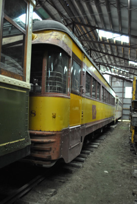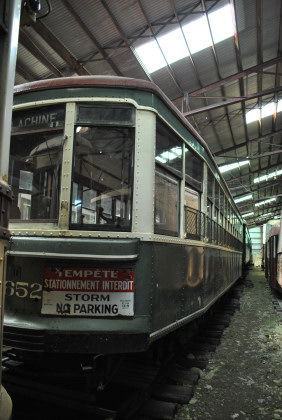 So in 1952, the former Springfield cars had their remaining platform lengthened, restoring them to double-end operation. During the 1950's, Seashore members enjoyed visits to Montreal to experience an extensive, traditional streetcar system which had disappeared elsewhere in North America. When the city's streetcar service ended in 1959, Seashore agreed to purchase several Montreal cars, but the museum first needed to add storage capacity and to build a loop to operate some of the Montreal cars which were single-ended. The Montreal Transportation Commission agreed to store the museum's cars until the museum was ready to receive them. 2052 came to Seashore in 1963. Since double-end cars were needed for operations at Seashore and 2052 also represented Springfield, the museum chose this car for preservation. Museum members debated whether to restore the car to its Springfield or Montreal appearance. Seashore currently identifies it as a Montreal car and it has seen substantial structural and cosmetic restoration. Seashore operated 2052 in regular service but Montreal had not adequately reinforced the underframe to support the longer platforms so the ends sag noticeably. In recent years 2052 has been held out of service due to additional needed structural work.