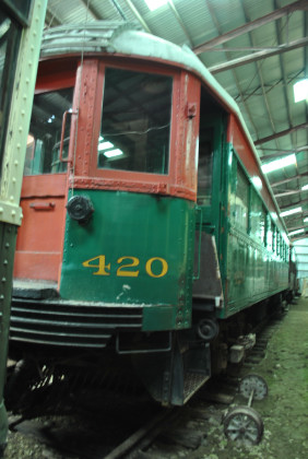 420 operated in suburban service until the North Shore's abandonment in 1963 afer which former North Shore employee John Horachek acquired coaches 420 and 755 as agent for Seashore. The two North Shore cars arrived at Seashore in 1966 and 420 has been repainted in green with red and gold trim as well as some other restoration work over the years. It is presently out of service with a motor problem. In 2015, the museum received a $10,000 matching grant from the Emery Rail Heritage Trust for restoration of the coach.