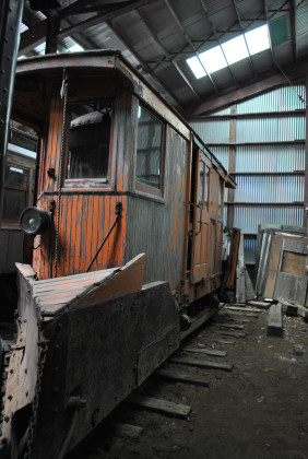 MBTA snow plough 5106 built by St. Louis Car Company in 1908 and retired in 1995.